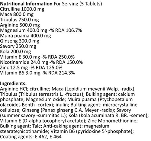 -. Title : Hyper sexuelles Stimulans bessere Erektion Arginin, Maca, Tribulus Terrestris, Muira Puama, Panax Ginseng, Bohnenkraut, Kolanuss, Vitamin E, Zink Monomethionin, Magnesiumoxid, Vitamin B6 3 Packung 75 Tabletten