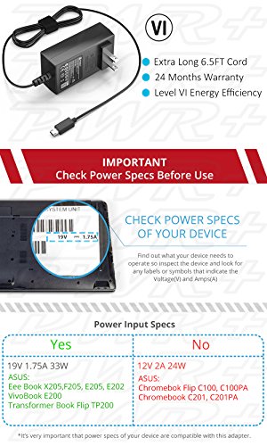 Pwr+ 19V 1.75A 33W Asus X205 X205T X205TA E205SA E202SA Charger; VivoBook E200HA; Transformer Book Flip TP200SA Charger Power Cord Eeebook Asus-Ac-Adapter - ! Check Plug / Models Photo !