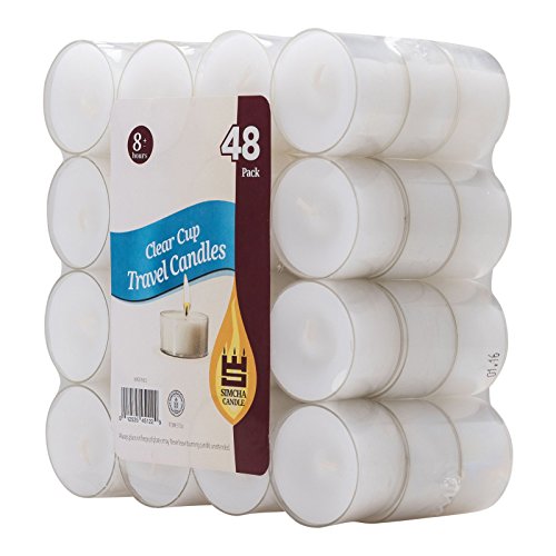 Simcha Tealight Candles Top Quality No Messy Cleanup Easy Disposal Protects Surfaces Sophisticated Design Burns 8 Hours White Unscented in clear cups - set of 48