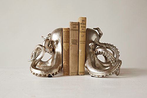 Creative Co-Op DA7837 Waterside Silver Resin Octopus Bookends