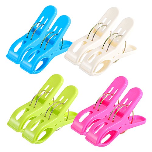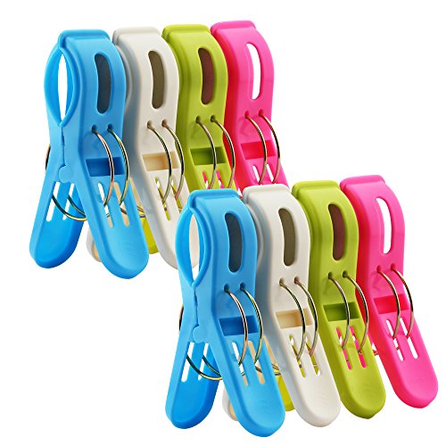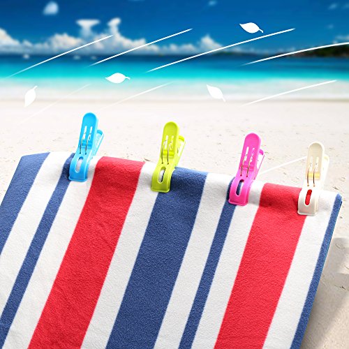 8 Pack IPOW Beach Towel Clips,Plastic Quilt Hanging Clips Clamp Holder for Beach Chair or Pool Loungers on Your Cruise-Keep Your Towel From Blowing Away,Fashion Bright Color Jumbo Size