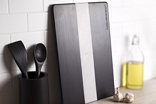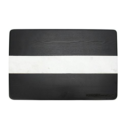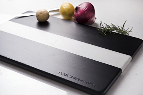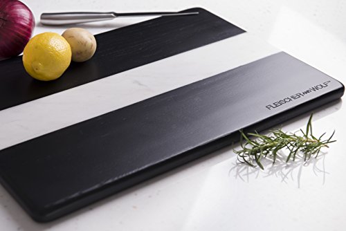 Fleischer & Wolf Athens Square Cutting Board,12 x 18 Inch-Designed in USA-Black Stained Ash with Marble Insert-Perfect Christmas Gift