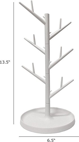 13.5 "Tall Turnable Multi Purpose Accessories Stand, White Assembled Jewelry Tree Organizer, Earring Display Necklace Hanger with Bottom Tray