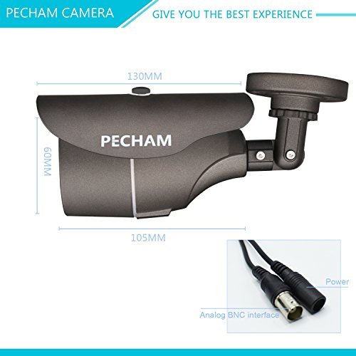 PECHAM HD 1200TVL Bullet Surveillance CCTV Camera 3.6mm Lens High Resolution 36 Infrared LEDs IR Cut-120ft IR Night Vision Distance Weatherproof Outdoor Security Camera, Aluminum Alloy Housing