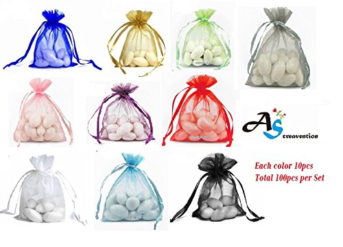 A&S Creavention Organza Mixed Colors Jewelry Pouch Bags Display bags 10 Colors 100pcs (3x4" Inches)