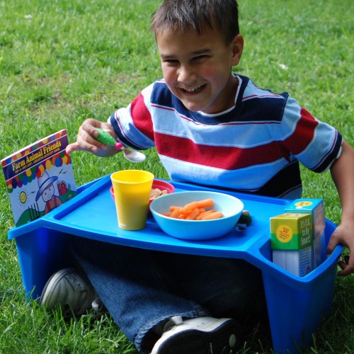 -. Binding : Kitchen -. Brand : The Storage Store -. EAN : 0077393705461 -. Feature : Made of sturdy plastic / 2 side pockets for storage / Color: BlueSize: 8 1/4tall x 22 1/2wide x 11 3/4deep -. Label : The Storage Store -. Manufacturer : The Storage Store -. PackageQuantity : 1 -. ProductGroup : Home -. ProductTypeName : HOME -. Publisher : The Storage Store -. Studio : The Storage Store -. Title : Plastic Lap Tray - Blue -. UPC : 077393705461