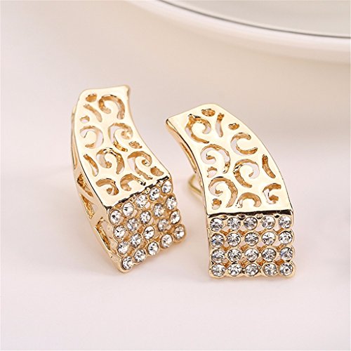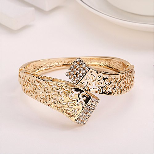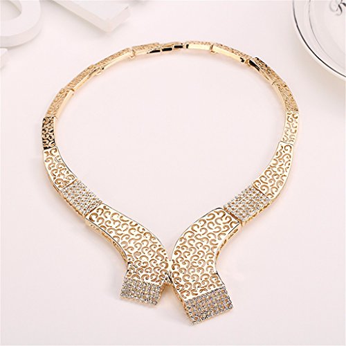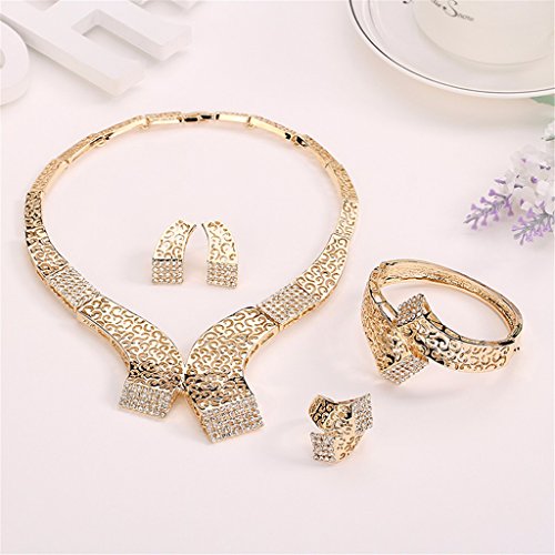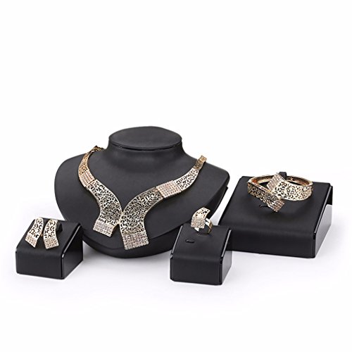 - Feature : Size: As Picture / The surface of the jewelry is gold plated and the material is alloy. It will never fade and is not allergy for your skin. The big stone is artificial zircon and small stone is crystal. / This jewelry set is shinning, beautiful, luxury looking, so it is suitable many occasions, such as dinner party, birthday party and wedding. This set is an ideal gift for your girlfriend, fiancée, wife, mother or friend. It is also a good choice for engagement or wedding jewelry. / Including 1 necklace + 1 bangle+1 ring + a pair of earrings in the jewelry set; / Item will be shipped from CA, USA in one business day. The delivery time of priority shipping is 1-3 business days and the standard shipping is 2-6 business days.