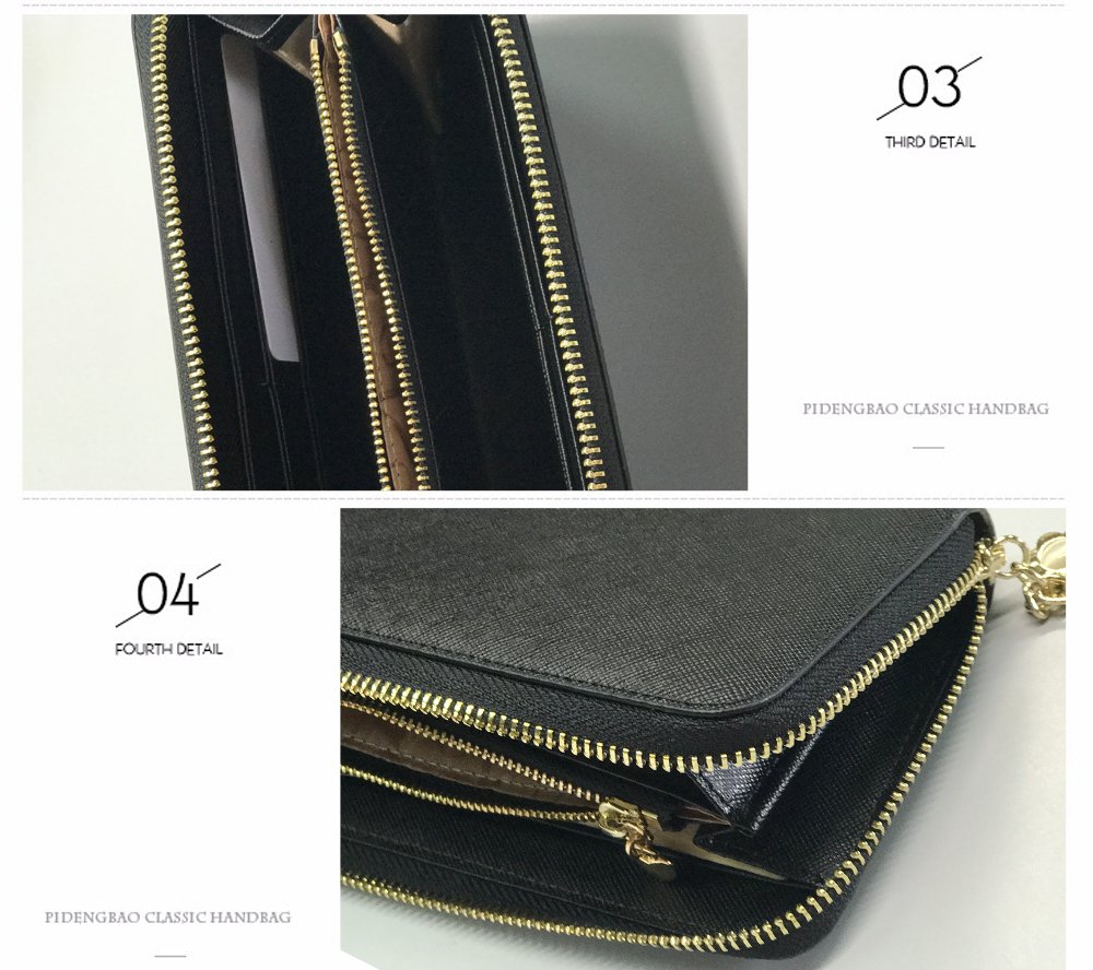 Wallets, 12 cards, business card holder, coin purse with divider, passport storage possibility.