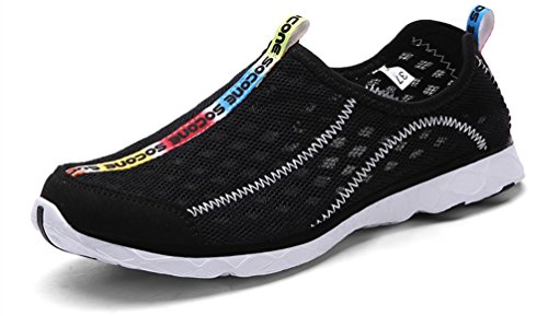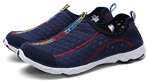 -Soft Breathable and Quick Dry Mesh Upper The mesh material offer double accelerated quick dry than common stretch fabric upper, and allow the foot to breathe. Sand will not get into the shoe from the dense mesh upper. -Easy On and Off Slip-On Designing The slip-on designing offer easily on and off, protecting your foot from dropping off. -Comfort and Quick Dry Water Drain Insole Cushion absorbing rubber insole with punching, give extra support for the sole, that creates a cooler and healthier shoe environment. This insole also has a layer of dense mesh, sand will not get into the shoe from the insole. -Excellent Bounce-back and Durability Midsole Solyte midsole provides an exceptionally lightweight midsole with excellent bounce-back and durability -Powerful Light and Cushion Absorbing Water Sole Unlike most of the heavy Rubber water sole,this supper light Rubber barefoot sole with fast water drain design that guarantee you have better performance from your sports. Combined with Rubber piece ensure the slip resistance, while the EVA giving the Cushion Absorbing support and durable. Recommended for Multi functional Using A good pair of comfort water shoes, aquatic shoes, lake shoes, beach shoes, fishing shoes and water exercise shoes. Suitable for water aerobics class, pool swimming, water zumba, kayaking, beach trip, rafting, water amusement park, snorkeling, cave diving/exploring, waterfall climbing, taking surfing lesson, a cruise for water excursions, water volleyball, water physical therapy and so on. 0 |