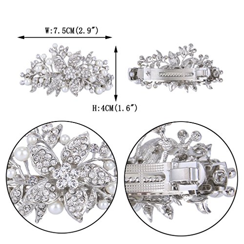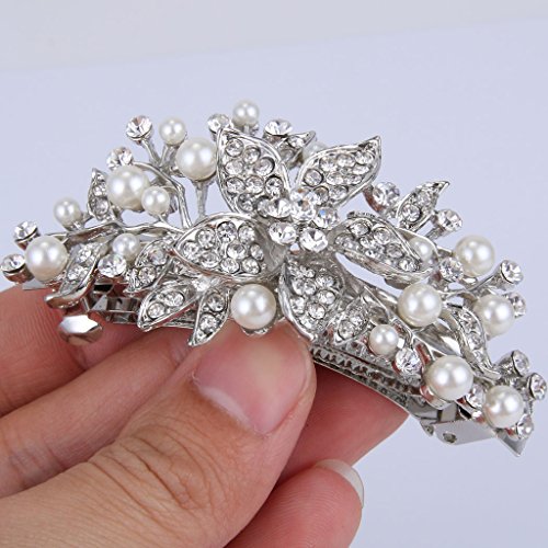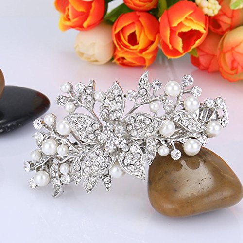 -. Binding : Jewelry -. Brand : EVER FAITH -. Department : womens -. Feature : [!]EVER FAITH® is a US registered trademark and Ever Faith Jewelry is its only owner. / This barrette will make your hair fashion look minimal and simple. / Great for all occasions. / Attachment Size: 7.5cm(2.9") by 4cm(1.6"), Weight: 28g / Wrapping: Come with some spare crystals, a gift box and a favor bag. If you need assistance please contact us. -. Label : EVER FAITH -. Manufacturer : EVER FAITH -. ProductGroup : Jewelry -. ProductTypeName : FASHIONOTHER -. Publisher : EVER FAITH -. Studio : EVER FAITH -. Title : EVER FAITH Austrian Crystal Bridal Hibiscus Cream Simulated Pearl Hair Clip Barrette Silver-Tone