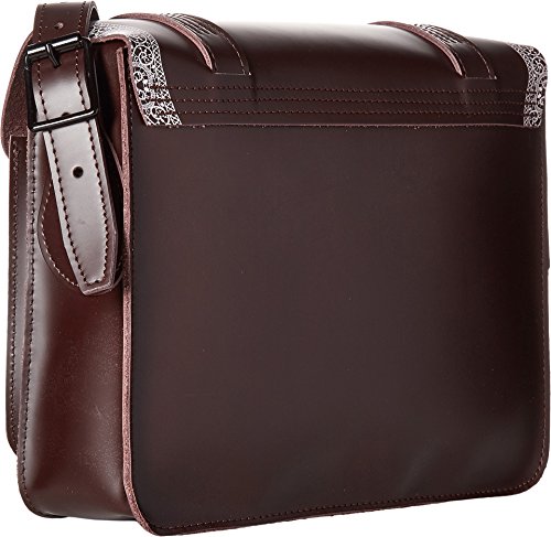 The traditional geometric lace prints based in gothic style, designed by Dr. Martens own team, are processed in the traditional 11'' Leather Satchel. This satchel has an oversized flap closure and a traditional buckle, so you can easily reach your stuff, a front pocket and a traditional business card holder. Additionally, the removable and adjustable leather shoulder strap are very comfortable. A sleek and sophisticated satchel with metal Dr. Martens logo and purist stitching. Matching shoes available. Measurements are 28 x 8 x 21 cm (LxWxH), belt 1 length: 114 cm and belt 2 length: 52 cm. Material: Leather, Satin.Feature