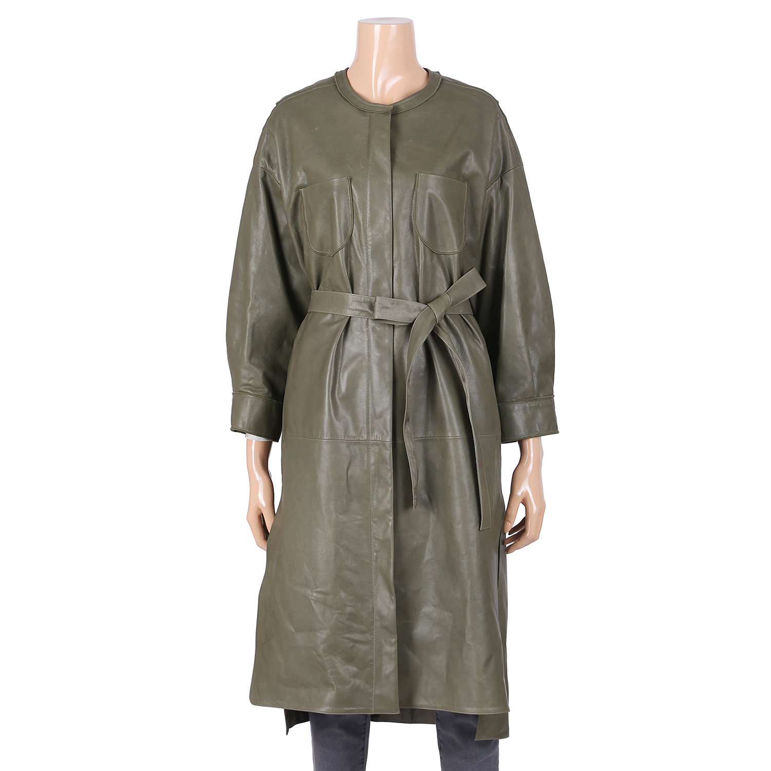 체형이크신분이나 여유있게 있는스타일의 롱가죽코트 입니다