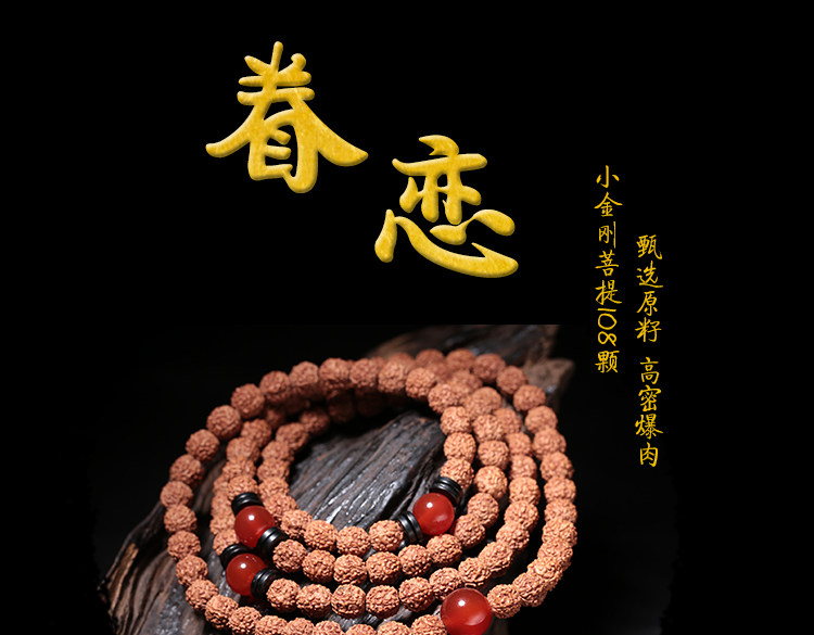 开光小金刚菩提子佛珠 108颗念珠手链五瓣木饰手珠玛瑙男女款手串