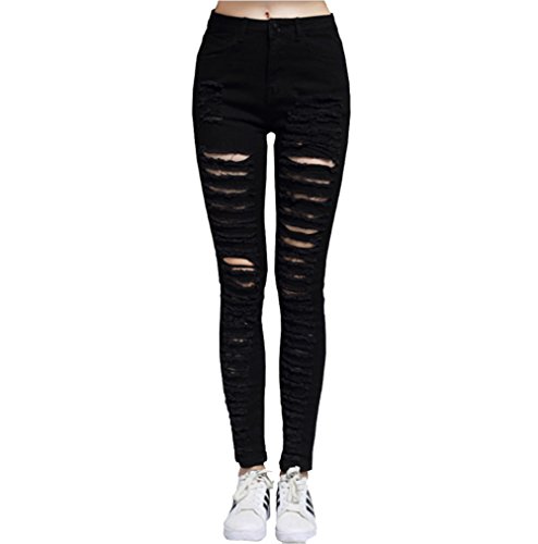 -. Title : LIENZY Women's spring tight black torn elastic jeans black sexy leggings Pencil Pants