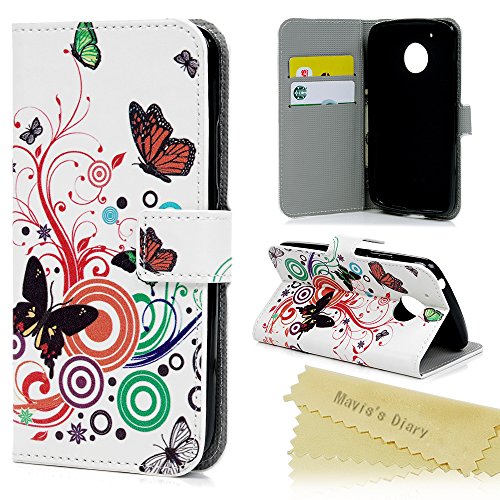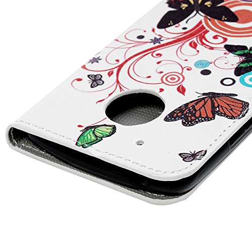 Moto G5 Case (2017),Mavis's Diary Painted Butterfly and Flower PU Leather Protective Wallet Case with TPU Inner Bumper Magnetic Card Slot Flip Cover with Dust Plug & Pen