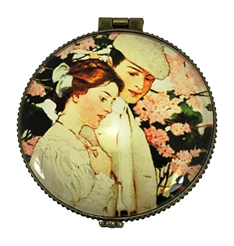 - Glass lid features an image of an Art Nouveau style Couple in a garden.