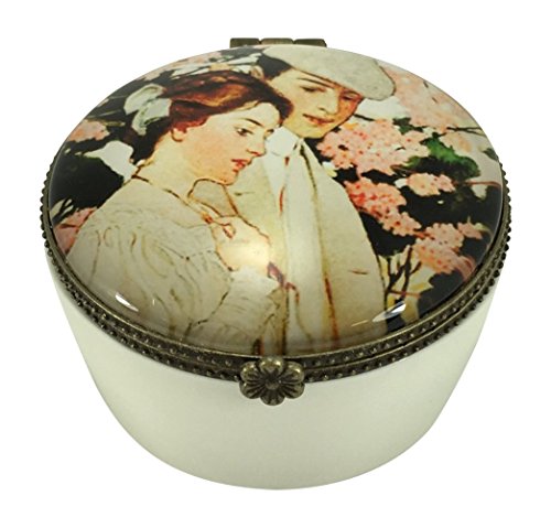 Trinket Box by Value Arts, Lovers in the Garden, Ceramic and Glass, 2.5" Diameter