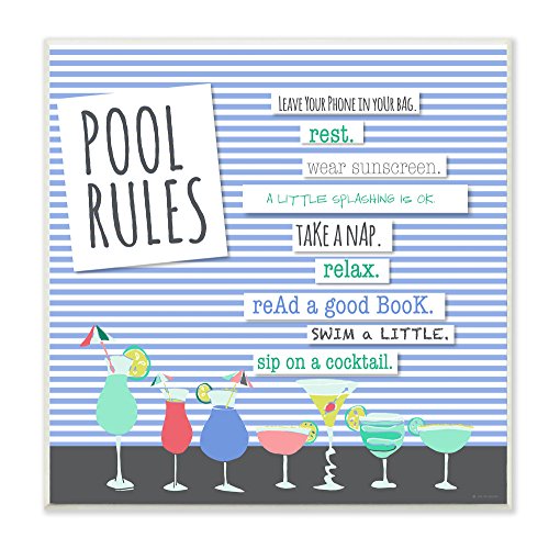 Stupell Home Décor Pool Rules Typog and Icons Wall Plaque Art, 12 x 0.5 x 12, Proudly Made in USA