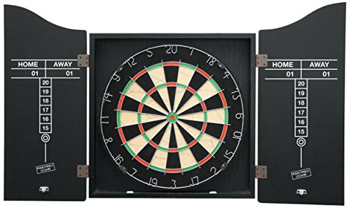 -. Feature : Tournament quality dartboard & black cabinet complete with accessories / 173/4 " diameter roundwire bristle dartboard with silver number ring / Cabinet has easy-wipe scoring panels / Accessories include 2x sets of darts & flights, chalk, duster & instructions