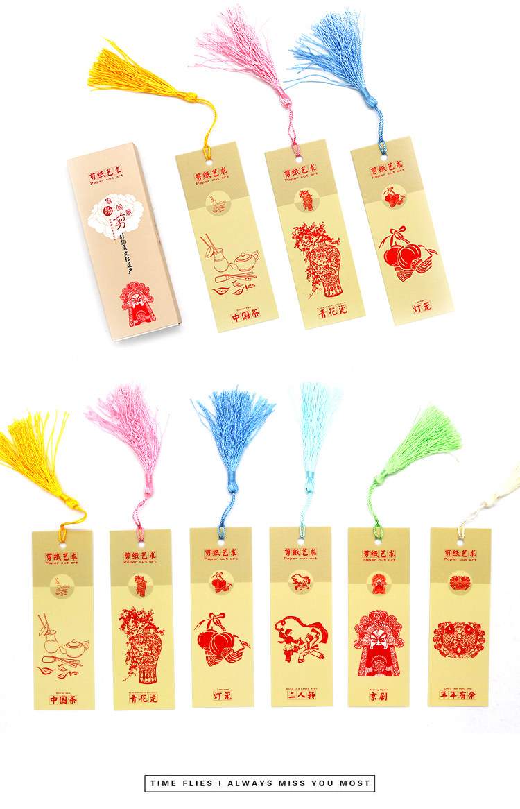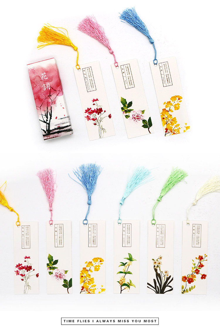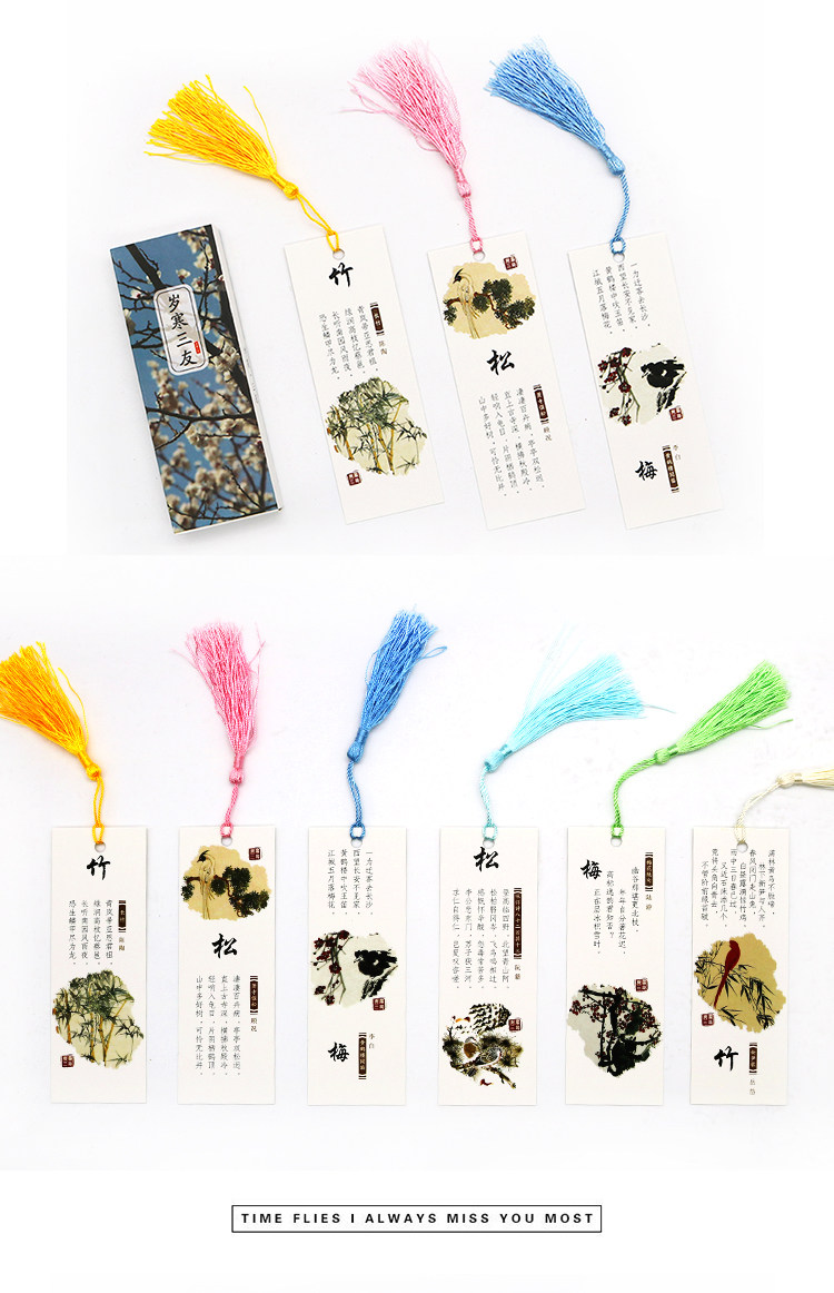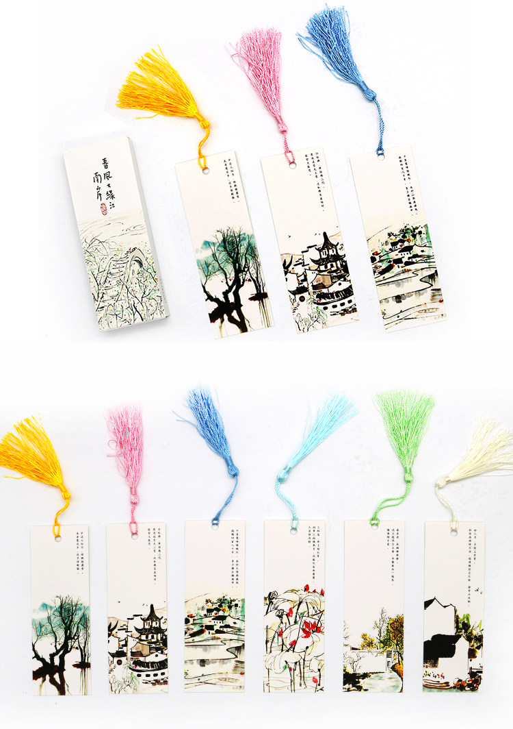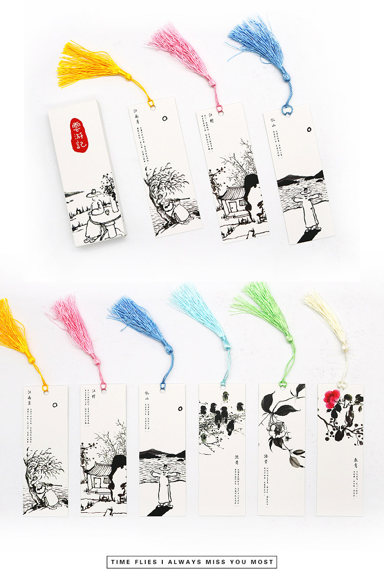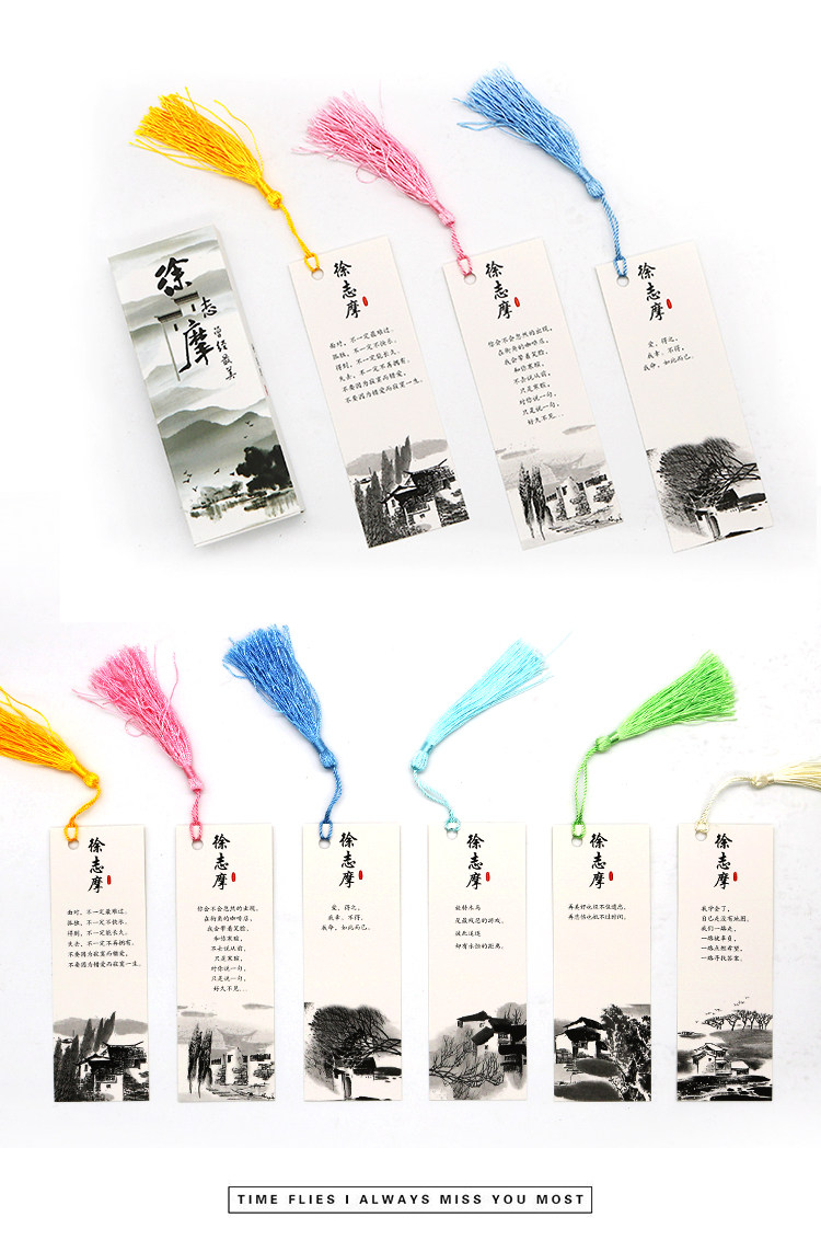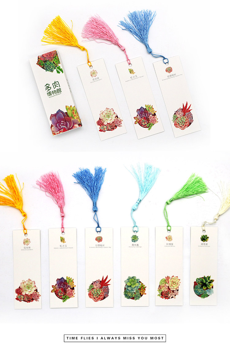 文艺水墨多肉励志纸质复古风书签中国风古典流苏穗子创意小卡片