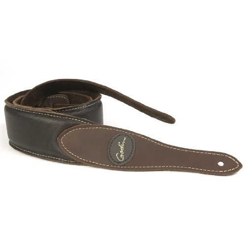 Godin Guitars 036998 Guitar Strap, Godin Brown Padded Leather and Suede with Patch Logo