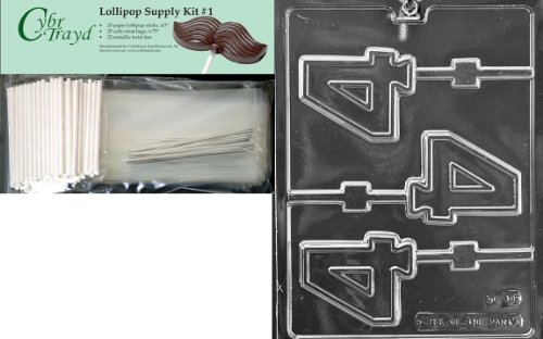 Cybrtrayd Number 4 Lolly Letters and Numbers Chocolate Candy Mold with Lollipop Supply Bundle of 25 Silver Twist Ties
