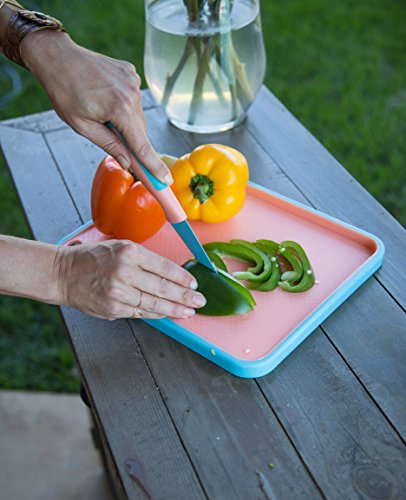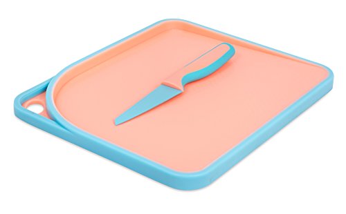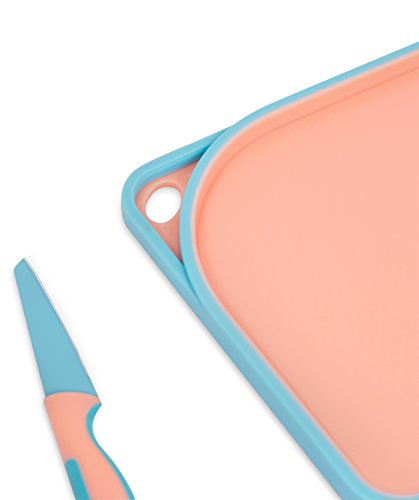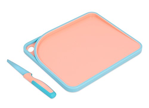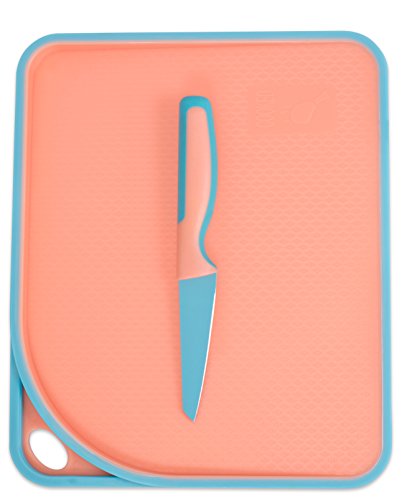 Internet’s Best 2 Piece Colorful Knife and Cutting Board Set | Non Stick Cutlery | Knives for Chefs Cooks College Kitchen | Pink & Blue