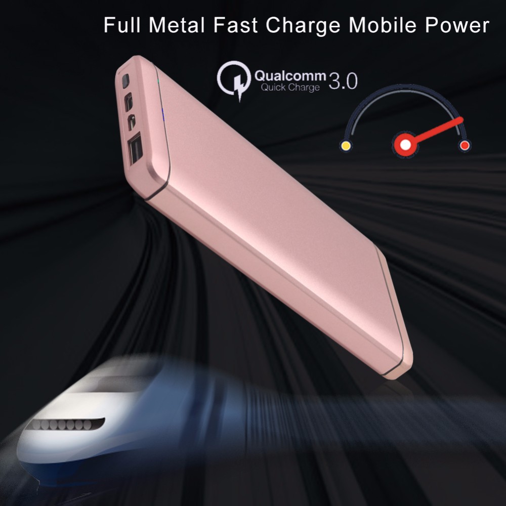 Powered by Lithium Polymer Smart Charging Technology, the Full Metal QC 3.0 Mobile Power can automatically detect connected device and determine your device charging specification before charging with optimal current.