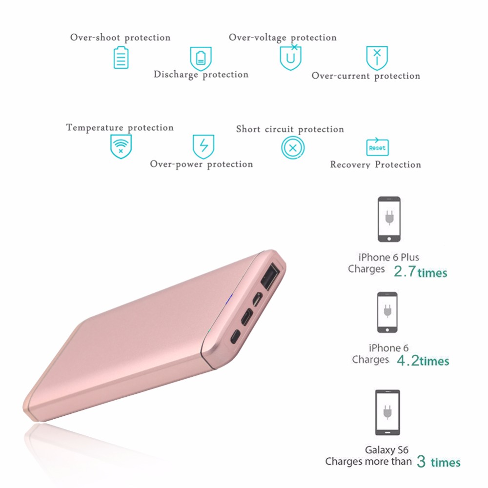 Officially licensed and certified to use Qualcomm Quick Charge 3.0 Technology, the unit powers compatible devices up to 4 times faster than general mobile powers, and 27% faster than QC 2.0 Mobile Powers, gives all your USB powered devices exactly what they need with up to 2.4A output available through both the USB output and the Type C port. Self charging speed is 70% higher than other general mobile powers.