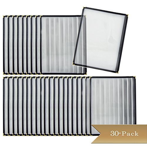 Set of 30 - TrueCraftware Restaurant Menu Covers - 9 1/4" x 12" - Single Cover - Transparent - Double Stitched with Black Binding