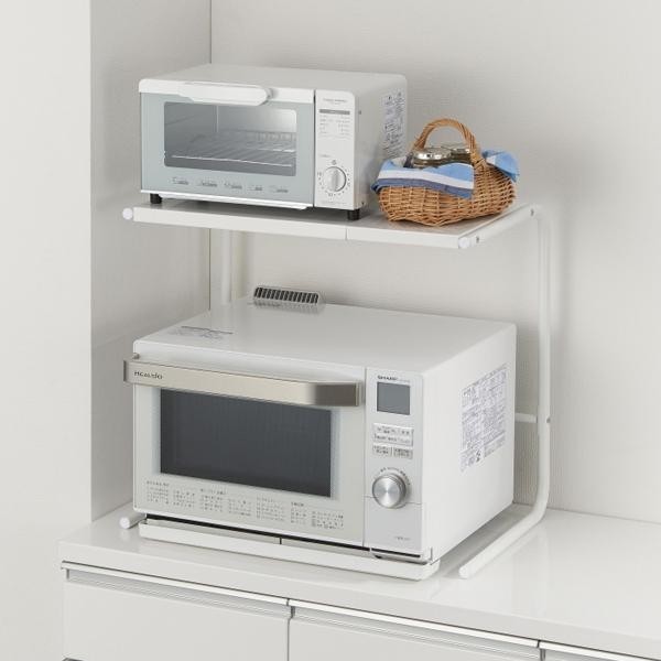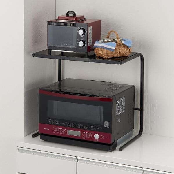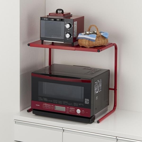 | デッドスペースを有効利用!!ほとんどの電子レンジに対応する、ワイド&ハイタイプのラックです。トースター・コーヒーメーカー・ジューサーなど、様々な家電をすっきり収納できます♪ |