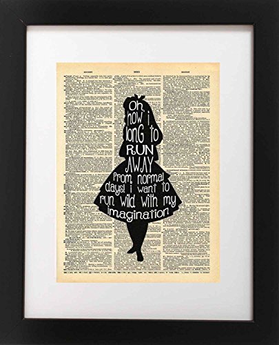 -. Brand : Local Vintage Prints -. IsAdultProduct : 0 -. ProductGroup : Guild Product -. ProductTypeName : GUILD_HOME -. Size : 8 x 10 Inch -. Title : Alice in Wonderland Imagination Quote Vintage Dictionary Art Print 8x10 inch Home Vintage Art Abstract Prints Wall Art for Home Decor Wall Decorations For Living Room Bedroom Office Ready-to-Frame