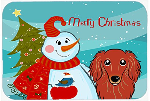 Caroline's Treasures BB1834JCMT Snowman with Longhair Red Dachshund Kitchen or Bath Mat, 24 by 36", Multicolor