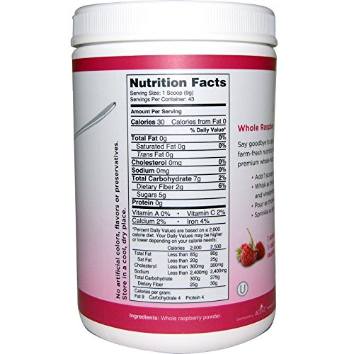 one scoop/powder serving = one cup serving fresh raspberries