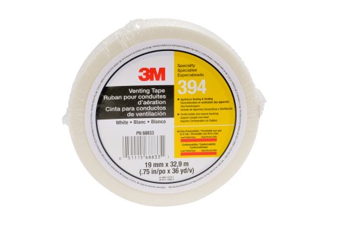 -. Binding : Misc. -. Brand : 3M -. Color : White -. Feature : Features unique non-woven porous backing that has high air/gas permeability / Meets most outgassing requirements for foam-in-place insulation processes / Pressure sensitive adhesive holds strong to a wide variety of surfaces / Includes fungicide for use in areas with high humidity / Available in new convenient-sized packaging -. PackageQuantity : 1 -. ProductGroup : BISS Basic -. ProductTypeName : ADHESIVES_AND_SEALANTS -. Title : 3M Venting Tape 394 White