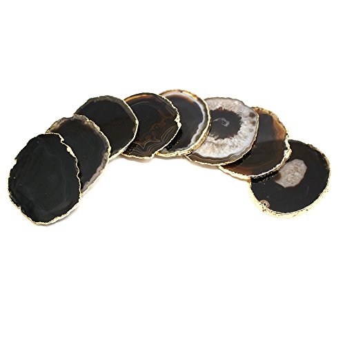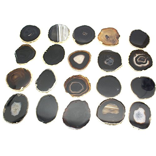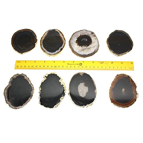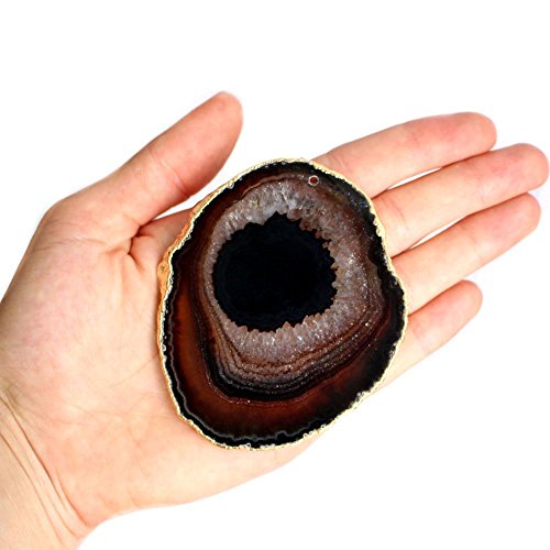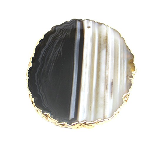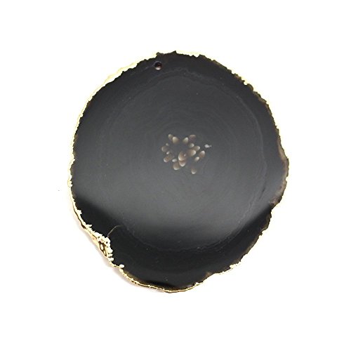 Black Agate Slice Drilled on Top with 24k Gold Plated edges - 2.5" to 3.5" - Rock Paradise Exclusive COA