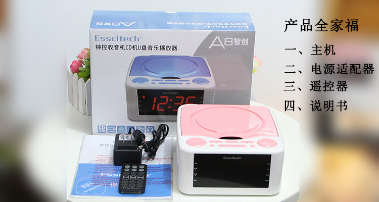 3. The timer switch can be timed to open CD and U disk (the freedom to choose the track to do alarm, adjustable long time alarm), radio, SLEEP sleep timer function.