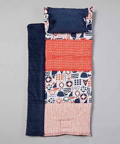 Studio : Janiebee Publisher : Janiebee Binding : Baby Product Product Description Features. Ahoy Quilted Nap Mat. Handmade in Snellville Georgia USA. Perfect for daycare Grandmas vacation camping or anytime a nap is needed. Made from the finest quilters cotton. Minky tm brand attached blankets pillowcases. 2 of thick soft safe polyester batting. Each mat is made like a little quilt. Quilted down on each fabric change and throughout the mat. Rolls up like a sleeping bag with convenient shoulder strap and fabric ties. Fits in a 10 Cubbie. Machine Washable Dryer safeSpecifications. Pillow Case Thickness 48 L. Dimension 2 H x 21 W x 53 L. Weight 4 lbs 0