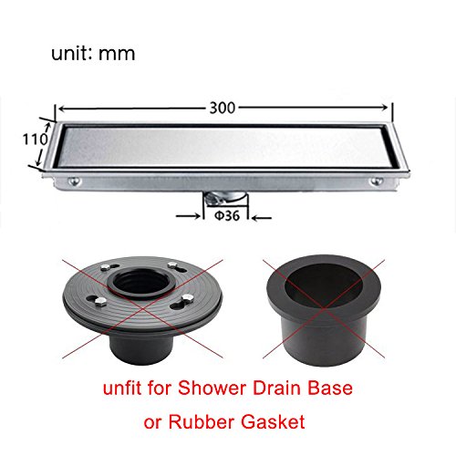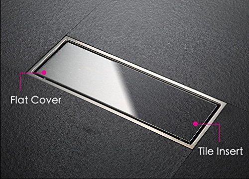 SUS304 Stainless Steel Linear Shower Floor Drain with Tile Insert Grate Removable Cover 11.8 inch Long, Brushed Finish
