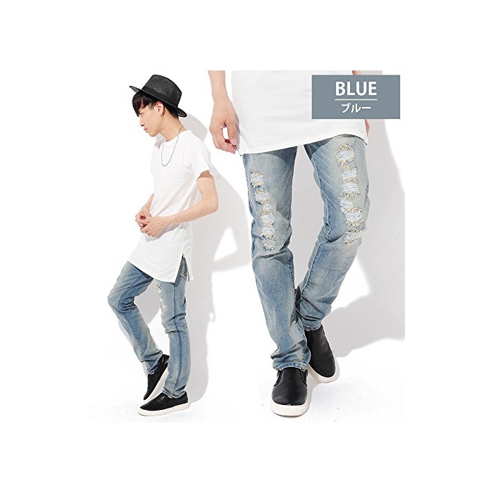 원본상품명: ブル L (ベストマト)BestMart リメイク クラッシュ 加工 ストレッチ スリム デニム パンツ ダメジ メンズ ストリト系 ジンズ ジパン Gパン スキニ スキニデニム スキ