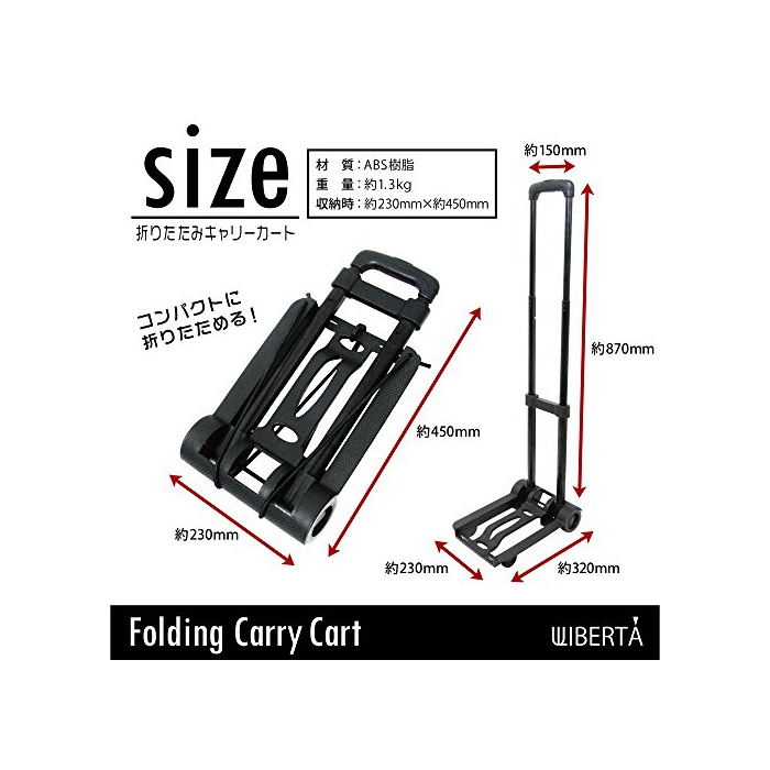 LIBERTA(Liberta) 캐리 카트 운반용 수레 접이식식 경량 콤팩트 아웃도어용 내하중25kg 3단계 조절