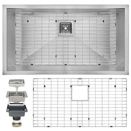 Perfetto Kitchen and Bath 32" x 18" x 9" Handmade Undermount Single Bowl 18 Gauge Stainless Steel Kitchen Sink with Drain and Dish Grid