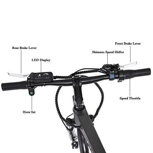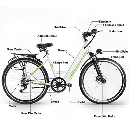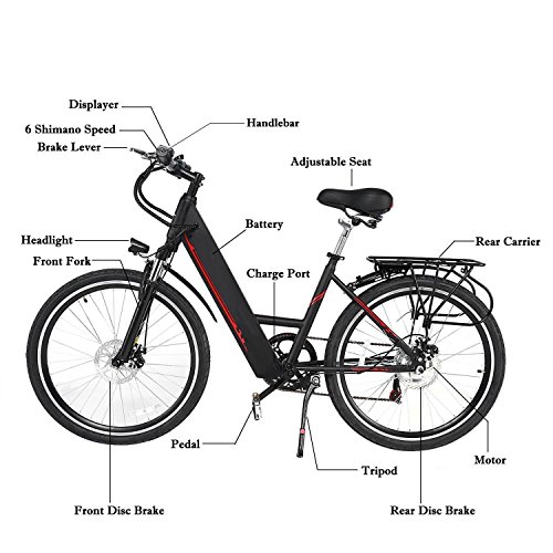 Studio : Kaluo Publisher : Kaluo Product Description The aluminum alloy frame, strong brakes, and a 6-speed Shimano gear system offer all the qualities of a premium city bike with the added feature of three pedal assist modes. You can have it on a mountain bike or road bike, use it go for an outing on the weekends with your friends and family or as a vehicle for work. It will be your favorite bike you have ever owned. It is an amazing transportation solution for forward-thinking, green-minded people who also want to enjoy the journey. The City Electric Bicycle will be shipped from US warehouse send your hands just 4-8 days Package Content: 1 x E-bike Set Specification: Material: Aluminum, Plastic Color: Black, White Size: 169 x 103cm/66.5 x 40.5inch Occasion: Outdoor Safety Instruction: The E-bike features the most recent innovation in technology. For safety reasons, it is most important that you read this user manual before you operate the bike. Improper handling can reduce its riding performance and most importantly, cause danger to your sage and healthy. For handing and maintenance of the bicycle, please refer to the E-bike user manual which is an integral part of this e-bike user manual. Do not at any time dismantle or disassemble any of the above e-bike components. Please check all parts are tightened and locked before riding. Please make sure that the battery charger and charging plug are always kept dry and never get wet. The charger should only be cleaned with a dry cloth. Never use a wet cloth, oil or any other liquid. Note: Due to the difference between different monitors, the picture may not reflect the actual color of the item. 0 |