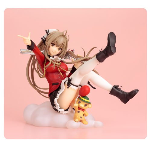 A KOTOBUKIYA Japanese import! Based on the Japanese light novel series by Shoji Gatoh and Yuka Nakajima, the anime series Amagi Brilliant Park tells the story of a magical amusement park that's secretly a life support system for survivors of another realm. Now the interesting characters of the park are coming to Kotobukiya's AniStatue collection with the royal guard and manager ISUZU SENTO! Taking a moment to herself from threatening workers at the park, the Maple Land guard relaxes by reclining on a cloud, leaning back with her feet up in the air. Isuzu wears her distinctive uniform with a red and black jacket, black skirt with white frilly hem, white stockings, and short black boots. Her outfit is further accessorized by a black and white hair tie, black garters on her stockings, and intricate gold braids and ties on her shoulder and chest. Her workers better watch out as the boss makes a shooting gesture with one hand while the other holds her magical muzzle loader over her shoulder! The beautiful Isuzu is fantastically detailed with the decoration on her firearm, clothing elements, long hair, and a smiling face, and there's even a tiny Moffle fairy holding a red balloon sitting with her. Sculpted by Ryo Hashimoto, the Amagi Brilliant Park manager is nearly 5 inches tall (1/8 scale) sitting on her puffy cloud-shaped display base. Keep the other statues in your collection in line with the beautiful and eye-catching Isuzu Sento sitting on your shelf!.Feature