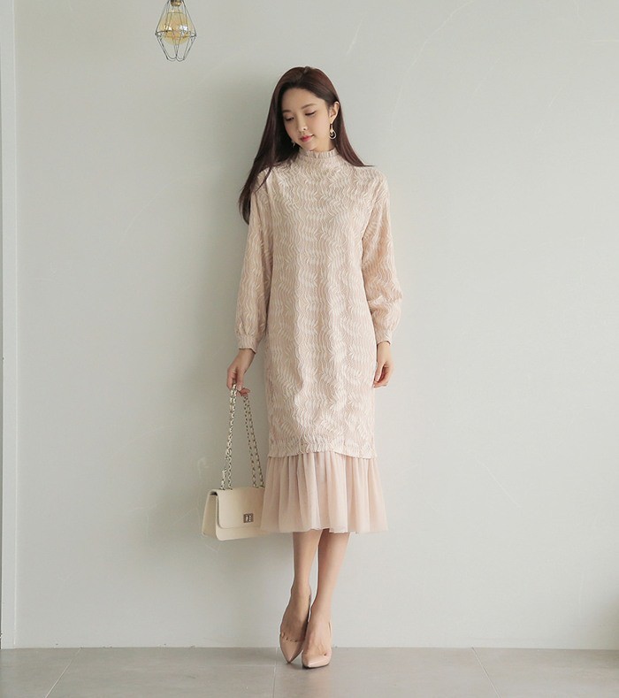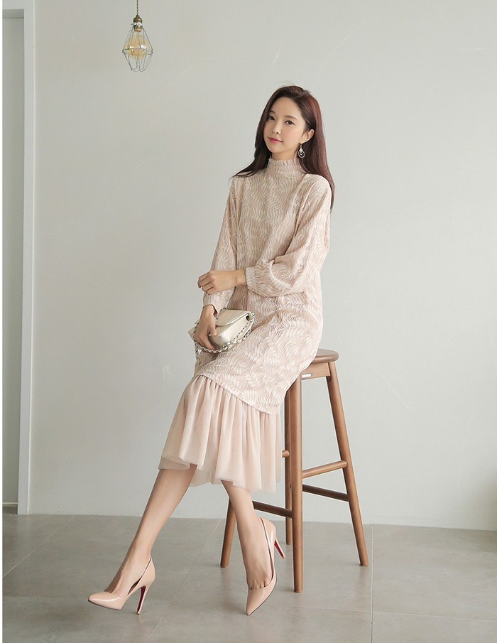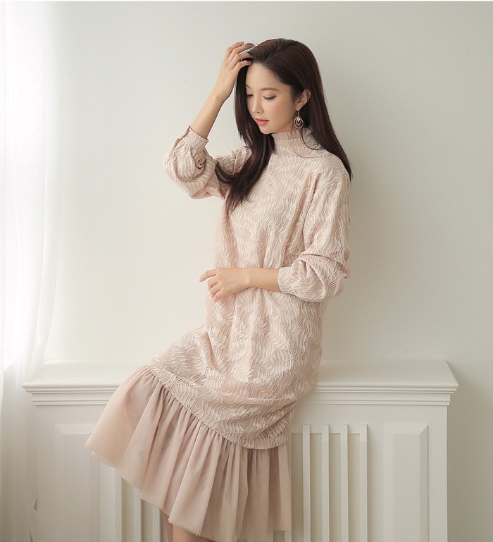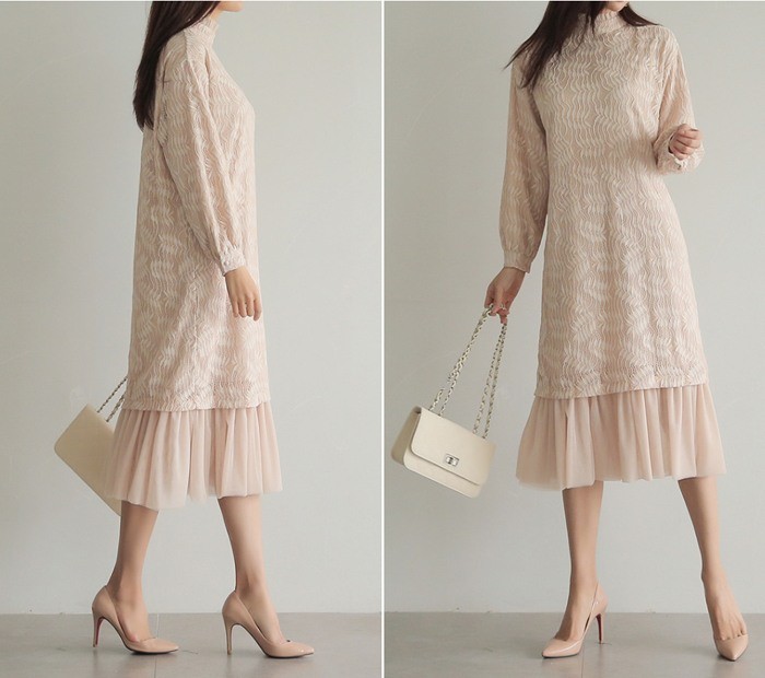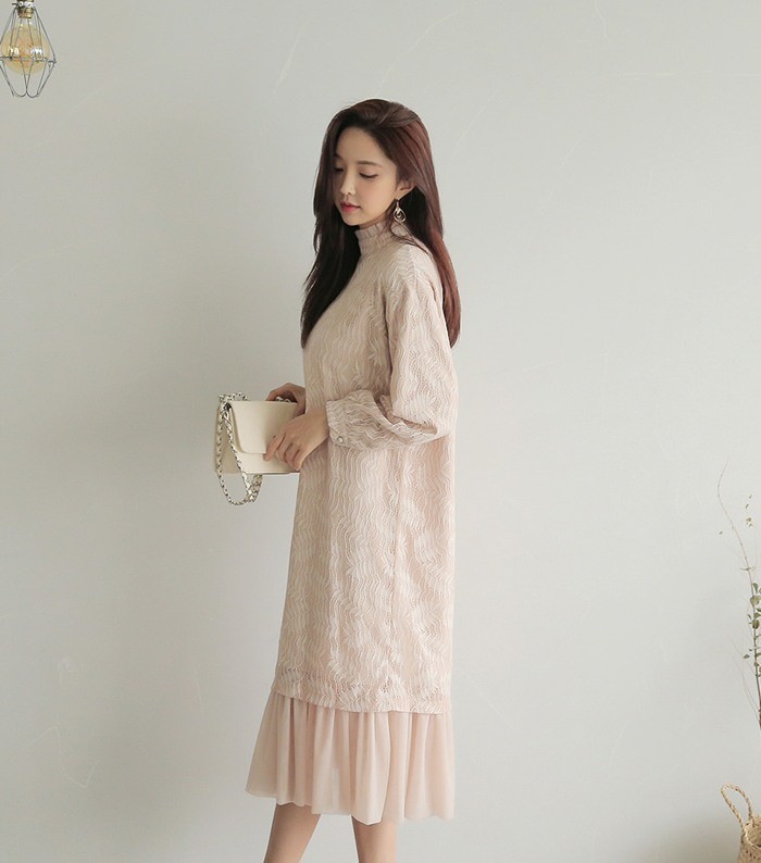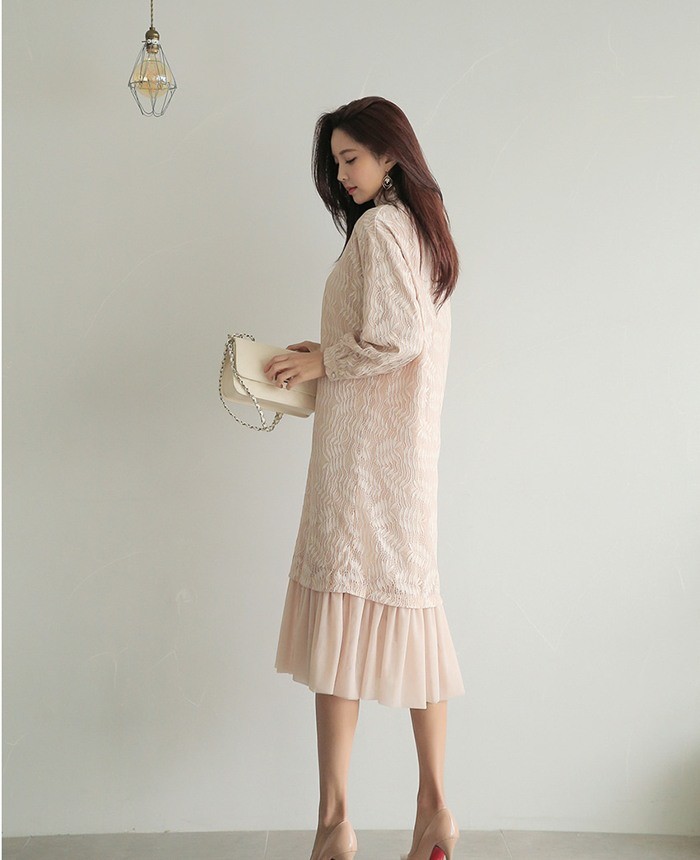 商品名:ワンピース ロング丈 長袖 レース