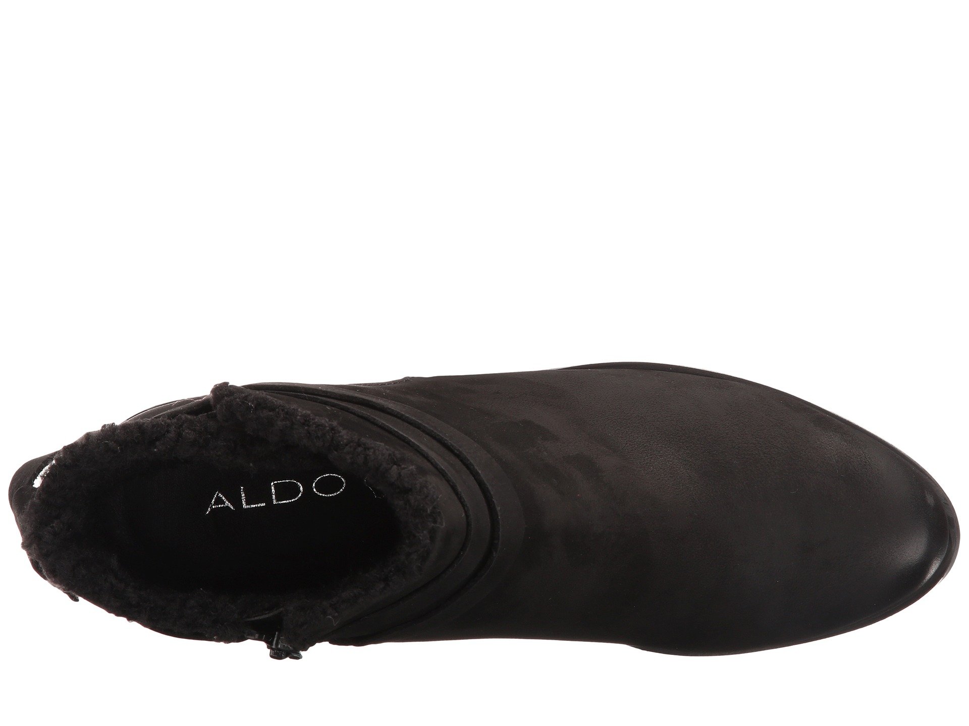 | Product Information SKU: #8843112Ready your look for when the snow starts to flurry in these gorgeous Mykala boots from Aldo?!Bootie made with leather upper.Inside zipper closure. Wrapped strap with knot detailing.Almond toe silhouette.Plush faux shearling lining.Stacked chunky heel.Flexible rubber sole.Imported.Product measurements were taken using size 38 (US Women's 7.5), width B - Medium. Please note that measurements may vary by size.Weight of footwear is based on a single item, not a pair.Measurements: Heel Height: 1 3?4 in Weight: 13 oz Shaft: 5 in |