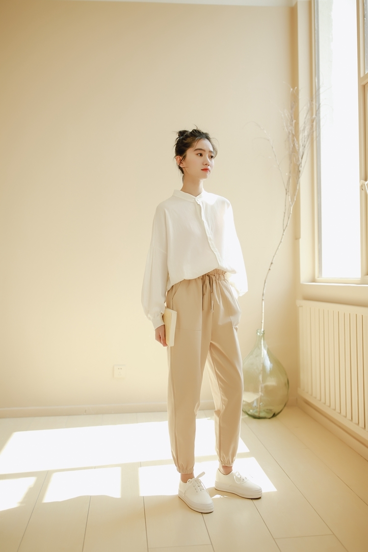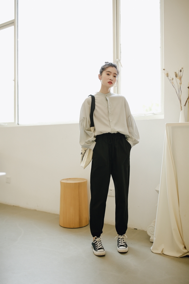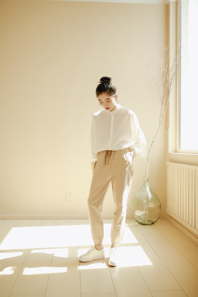 トップスの雰囲気を変えることでカジュアルにもキレイめにもコーデできる、大活躍の一着です。