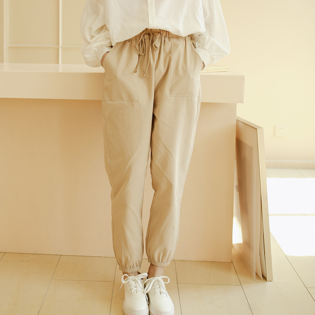 カジュアルなデザインながらもふんわりとした素材が女性らしい、カジュアルなハイウエストパンツです。
