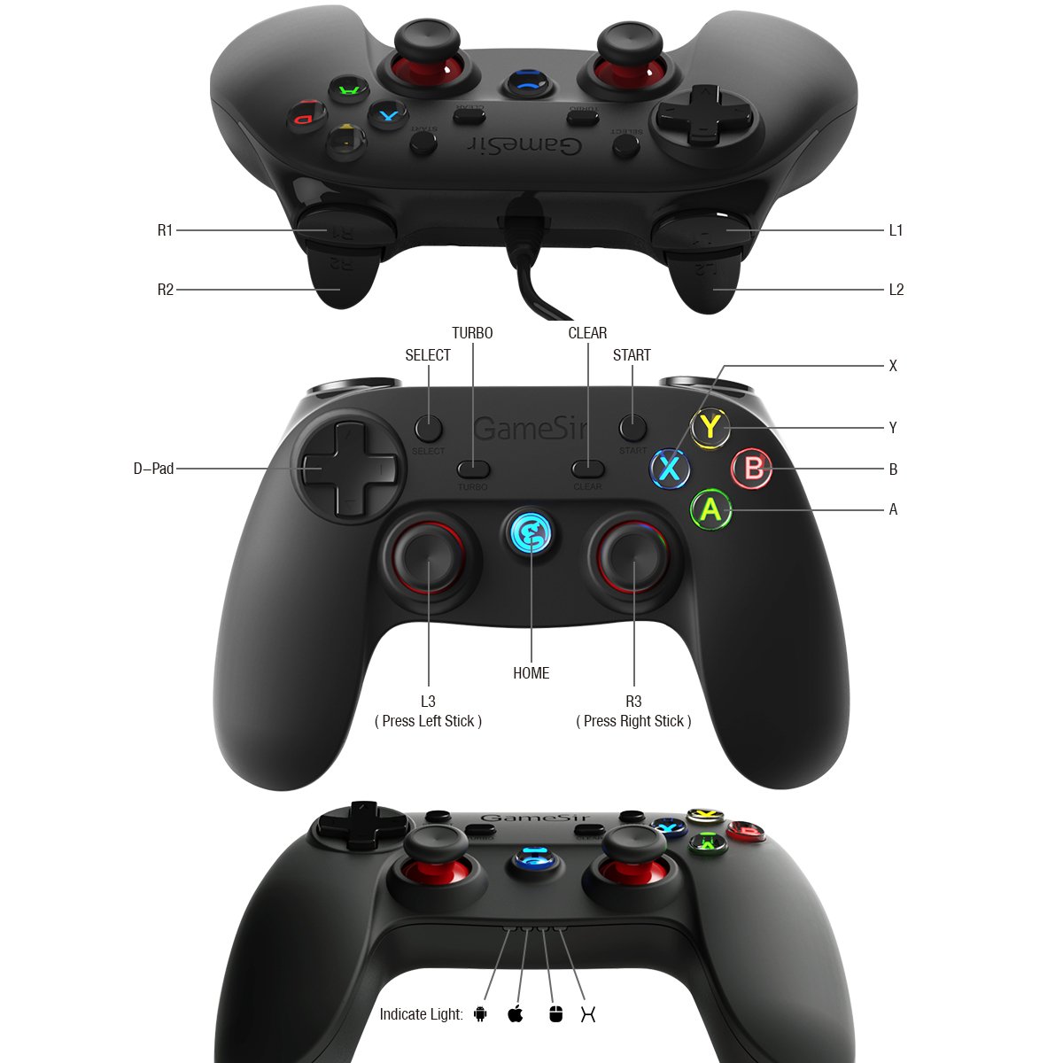 Except for the cable of the game pad body, 1 meter USB extension cable is attached.