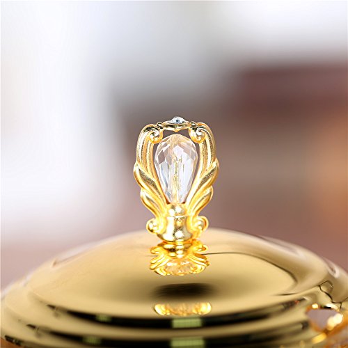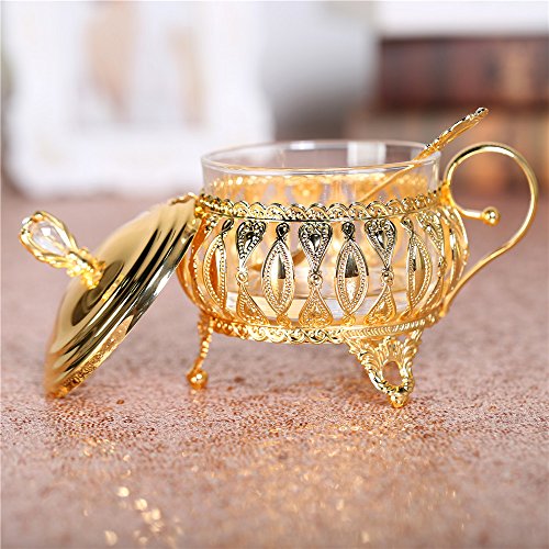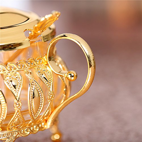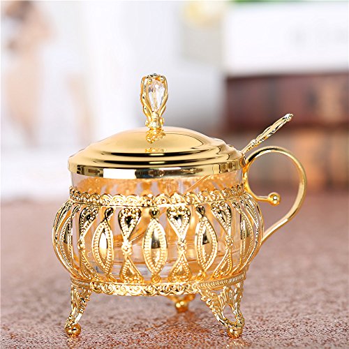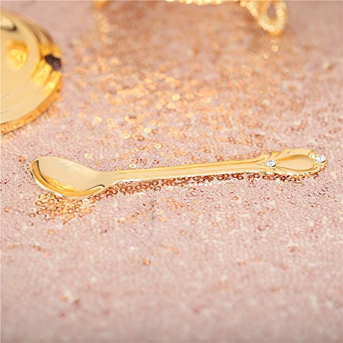 Trendy Looking All the crown shape holder, crystal rhinestone decoration, and gold color creat a high-end condiment pot. The gold tone coating on the metal is a plus and looks classy. It never rusts, tarnishes, or discolors and stays shiny gold color.